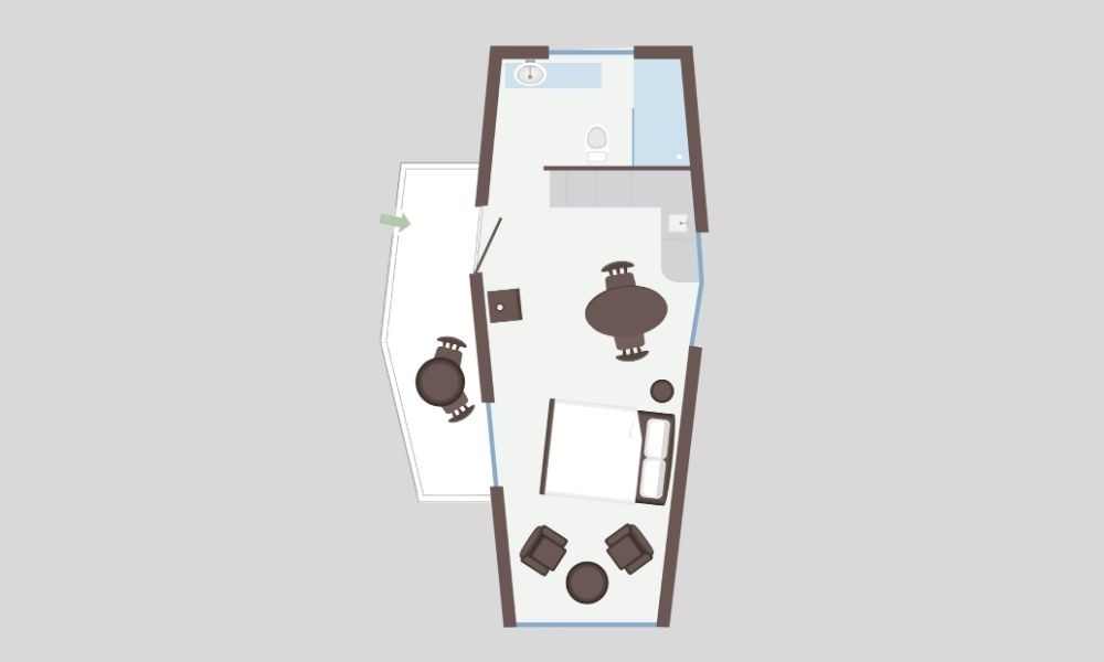 Mit Rose, Traubensaft und Wasser gefüllt, ist die Minibar dein ganz privates Genussfach. Dazu sorgt ein smarter Pelletsofen für wohltuende Wärme, wann immer du willst.